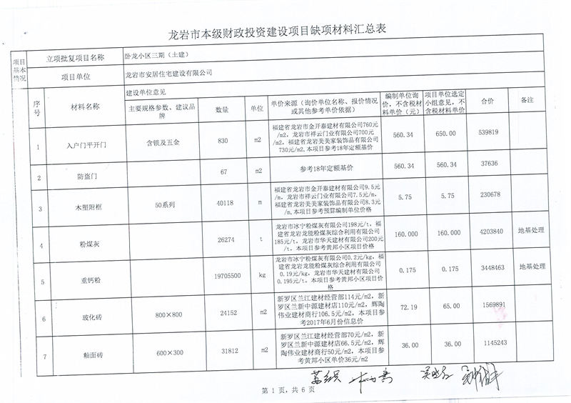 龙岩市本级财政投资建设项目缺项材料汇总表-卧龙小区三期(土建)